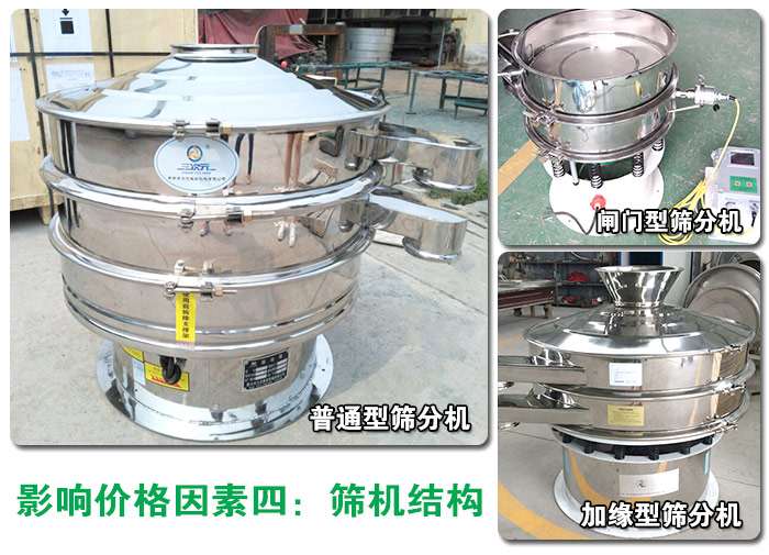 煙草振動篩分機除標準結構外還可根據現場環境的使用需求特殊定制(如底座加高、進料口加緣、出料口加閥門等等),隨之價格也會有對應的提升,每個型號之間相差600-1500元不等。