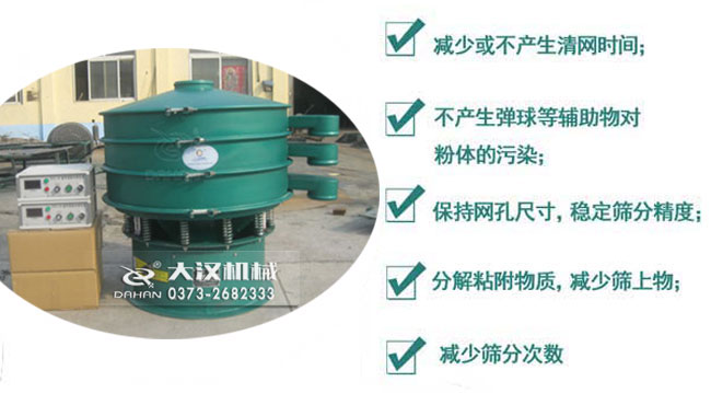 改善低密度粉在重力沉降中的平降(粉末與網(wǎng)口輕接觸)滑移效應,改善高密度金屬在網(wǎng)口滯留或楔入,改善帶靜電粉體的粘附效應,從而提高篩分效率和篩分質(zhì)量。用篩分通過率表示,一般情況下比普通旋振篩增加通過率50%-400%。