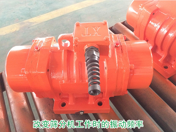 可改變篩分機工作時的振動頻率與其自身固有的振動頻率為不一致的頻率,可通過振動電機改變篩分機的振動頻率從而達到防止共振的目的。(可調節電機兩端的偏心塊夾角來改動激振力的大小,夾角小,激振力變大,振幅變大;反之,夾角變大,激振力變小,振幅變?。?。